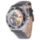 My husband loves the watch, he likes the dial, the graphics, the band, and it keeps perfect time.