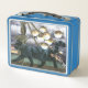 This is a standard metal lunchbox that appears to work just fine. We designed this box ourselves with an uploaded photo and custom text on the front and back. It looks absolutely beautiful except the front of the lunchbox is not centered like it shows in the photo. The print borders don't align with the inset flat part of the box where the preview photo online showed it perfectly centered in there. The back looks nice and centered though.