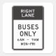 A road sign that says right lane buses only. This design looks really effective on these Stickers