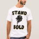 This men's t-shirt has a design that displays the words "Stand Bold" in a bold print font with black letter over a golden coloured shadow with a black and gold lion head icon in the centre in this faith based bible quote theme. This tee is comfortable, casual and loose fitting, made from 100% cotton, with double-needle stitched bottom and sleeve hems for extra durability our tees fit and wears well on any and everyone.