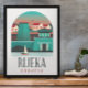 Beautiful Rijeka Croatia minimal watercolor artwork showing the landscape and panorama of the croatian port city on the mediterranean sea. Great souvenir and gift idea.
