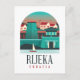 Beautiful retro print of Rijeka Croatia on a postcard showing the landscape and panorama of the croatian port city on the mediterranean sea. Great souvenir and gift idea.