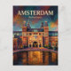 The Rijksmuseum is a grand Dutch national museum located at the Museum Square. At night, its brick facade and gothic towers are reflected in the nearby canal waters, surrounded by the glow of traditional street lamps and passing bicycles.
