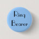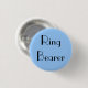 Customisable "Ring Bearer" pin button. Background colour, size, shape, font and text can be customised.