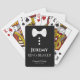 This fun deck of playing cards is designed as a gift for the wedding ring bearer. The backs are black with a white bow tie and buttons. The text is white and reads "ring bearer" with a place for his name, the name of the couple and the wedding date. Great gift to thank your little man for being a part of your wedding party.