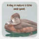 This sticker allows you to bring a hint of nature to your letters and scrapbook projects. The photo on this square sticker features a brown female ring-necked duck sitting on water. This bird displays a beautiful layering of brown tone feathers and sports the distinctive stripe across her beak. "A day in nature is time well spent" is the sentiment on this sticker and can quickly and easily be customised to suit your needs.