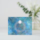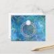 An ornate, stylised silver filigree ring studded with cloudy-white pearls and set with a single round white gem with a star glancing from its depths, set against a backdrop of watery blue fractals.