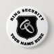 Ring security button with name of ring bearer. Small, medium and big sizes. Fun wedding gift for kids guarding the rings. Drawing of two interlocked wedding rings on a shield emblem.