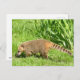 South American Coati, or Ring-tailed Coati (Nasua nasua) seen from profile on grass