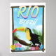 Rio Brazil Toucan cartoon flight style wooden framed travel poster.