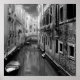 Ablack and white photo poster of a typical Venetian canal.