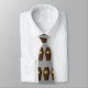 This awesome tie features a creepy coffin made from wood with gold edging. The coffin lid is slightly open revealing only darkness within. The gold plaque on the front of the coffin has spooky black text on it that says RIP, giving no clue who or what might be lurking inside. This fun yet sinister coffin is ideal for Halloween. The bleak grey background acts to draw the eye of the observer towards the coffin of doom.