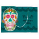 Celebrate their milestone birthday with a personalised gift bag that says adios to their previous decade. The message is ready to be personalised with a name and a decade and appears on both sides of the bag along with sugar skull graphics and lace illustrations against a teal coloured background.