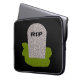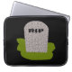This awesome laptop bag features a grey tombstone with RIP in dripping black text on it, standing on a patch of green grass. Befitting of this morbid design the background is black.