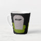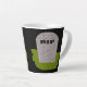 This awesome latte mug features a grey tombstone with RIP in dripping black text on it, standing on a patch of green grass. Befitting of this morbid design the background is black.