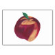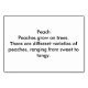 These flashcards feature a painting of a ripe, yellow and red peach with a green leaf. One the reverse side is text that says, "Peach