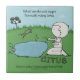 Little DC is seen sitting next to a water puddle, he is tossing some pebbles into the water. One frog sits in the water as the other is jumping as the ripple has reached him. The pebbles next to the little boy are situated to spell out the acronym BITUB. What we do will ripple through many lives are the words of David A. Carrizales. Christie Black created the sweet illustration.
