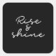 Rise and shine! Motivational words to start the day, perfect on a black sticker.