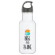 A water bottle with a cute typographical design. A fluffy cloud and an orange sun compliment the words which say: