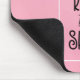 A mousepad with a cute typographical design. A fluffy cloud and an orange sun set on a pink background.