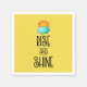 Paper napkins with a cute typographical design. A fluffy cloud and an orange sun.