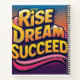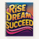 The "Rise Dream Succeed" notebook is bold and inspiring, designed to ignite motivation. The cover features a dynamic mix of vibrant colours, with a gradient from deep blue to fiery orange, symbolising the transition from night to day and the pursuit of success. At the centre, the phrase "Rise Dream Succeed" is displayed in strong, modern typography, with each word stacked for emphasis. Subtle rays or beams emanate from behind the text, adding energy and focus to the design. This notebook is perfect for goal setting, brainstorming, and capturing ideas on your path to success.