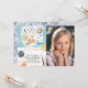 This cute "rise and shine" kids' birthday photo invitation features a breakfast plate with a croissant sandwich, a sunny-side up/egg, a cup of coffee, and fruits in watercolor. The reverse side features a white background with geometrical patterns in indigo blue. Personalise it for your needs. You can find more polar bear products at my store.