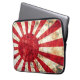 Laptop sleeve with distressed-style Japanese rising sun flag design.