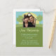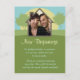 This cute new home announcement postcard is great to inform the ones you know of your recent house move. The postcard features a house template where you can stick your photo in of your family, dog or your new house. It has trees in the background with a rising sun.