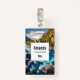Name tag with a scenic photograph featuring tree covered mountains in autumn colours. A vibrant river flows around a multitude of rocks.