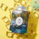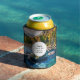 Can cooler with a scenic photograph featuring tree covered mountains in autumn colours. A vibrant river flows around a multitude of rocks.