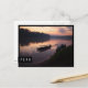 Postcard with a boat on the Tambopata river in the Amazon rainforest in eastern Peru near the Brazilian border during sunrise with a black edge and the text: 'Peru'.