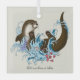 A cute brown river otter playing in the water with flowers in a cream coloured backdrop