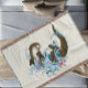 A cute brown river otter playing in the water with flowers in a cream coloured backdrop