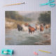 Bring motion and natural beauty to your crafts with River Run decoupage tissue paper. This design depicts horses galloping through a shallow river, splashing water around their legs, rendered in bold blacks, whites, and warm browns. The misty, verdant background emphasizes the energy and untamed spirit of the herd while keeping the focus on the horses’ dynamic movement. Perfect for gift wrapping, scrapbooking, and DIY projects, this tissue paper adds a lively, nature-inspired touch to any creation.