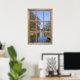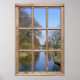 Poster that looks like a window -- a river Have you ever wished you had a river right outside your window? You can with this picture that looks like a window. The wooden window frames a still river scene with trees leaning over from the river banks on each side, a blue sky up above. It's just like living on a bridge! Put it on your wall for your own fake window with a view.