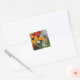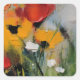 This evocative abstract artwork captures the feeling of a riverside meadow through rich texture, layered colour, and expressive brushwork. Warm bursts of red and golden yellow flowers rise from lush greens, while soft blues and misty greys suggest water, sky, and gentle reflections nearby. Thick paint application and visible palette-knife strokes give the piece a tactile, almost immersive quality, as if the scene is alive with breeze and movement.