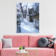 Stretched photo canvas features a snowy scene in New York City's Riverside Park.