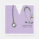 Unique medical-themed design featuring lavender nursing scrubs, stethoscope and a funny Swiss Army knife illustration.
