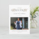 This photo graduation announcement is perfect for a graduate graduating with an RN, nursing degree. The graduation announcement reads "Celebrating the gRaduatioN of ..." highlighting the RN in the word graduation with an elegant script font. The simple white background with gold accents creates a sophisticated and elegant nursing degree graduation announcement. The back of this graduation announcement has an additional photograph and a longer message along with a clever headline that reads "eaRNed it" emphasizes the RN in the phrase, matching the text on the front of the announcement. The back is perfect for adding a message of gratitude or highlighting the graduate's accomplishments or future plans.