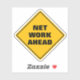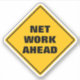 Funny classic yellow diamond caution road sign warns of net work ahead in a thick black sans serif font, which is a warning sign for the road work sign that will be coming up next.