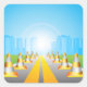 A whole lot of road cones along a road leading into a city. This design looks really effective on these Stickers