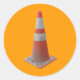 Photograph of a well-used orange and white road construction traffic cone. Image copyright 2012 by Margaret E. Cmelik.