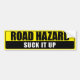 Are you tired of seeing STUDENT DRIVER bumper stickers on every other car on the road? Show them you’re onto their game with this bumper sticker that says ROAD HAZARD - SUCK IT UP ! You can change the background colour!
