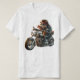 Make a statement with this bold biker T-shirt featuring a fearless road hog tearing down the highway on a custom chopper. Dressed in full biker gear with sunglasses, spikes, and attitude to spare, this character-driven design is made for those who live loud and ride free.