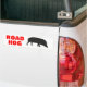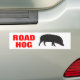 This bumper sticker features a silhouette of a pig covered in sparkly multicoloured dots. It has the slogan Road hog in big bold red letters on it.