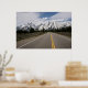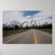 This photo features an empty road leading into the Teton Mountain Range in Wyoming.