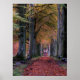 ROAD WITH FALLING LEAVES IN BETWEEN OF TREES POSTER