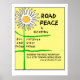 "ROAD PEACE is healthy for children and other living things SHARING THE ROAD PEACEFULLY IS A STEP TOWARD WORLD PEACE" with flower on yellow background