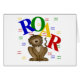 Cute lion design with bright multicolored primary colours text that reads "ROAR" on lion themed t-shirts, mugs, mousepads, stickers, buttons, and more.